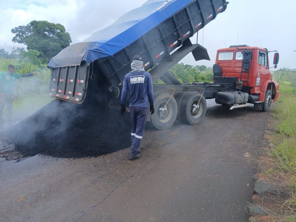 Outras frentes atuam em rodovias estaduais. Na AC-040, no km 62, em Plácido de Castro, os serviços concentram-se na recomposição do pavimento. Já na AC-090, os trabalhos se dão em dois trechos, nos km 84 e 35, no município de Rio Branco. Atualmente, o Deracre mantém quatro equipes de asfalto e uma equipe de terraplanagem, mobilizadas para atender às demandas do período chuvoso.