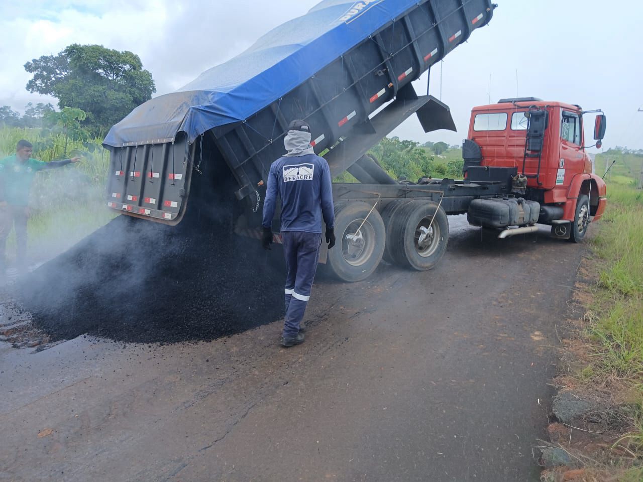 Em Xapuri, o Deracre executa a operação tapa-buraco em vias urbanas, em parceria com a prefeitura. Já em Porto Acre, as equipes realizam a manutenção de um ponto de erosão na lateral da rodovia AC-010, no km 21, com intervenção voltada à proteção da pista e à preservação da estrutura da via.