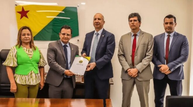 O presidente da Assembleia Legislativa do Acre (Aleac), deputado Luiz Gonzaga (PSDB), recebeu nesta terça-feira (2) a visita do procurador-geral do Ministério Público do Acre (MP/AC), Danilo Lovisaro, para entregá-lo sugestões de alterações na Lei Estadual 4.079/2023, que institui a política estadual de proteção dos direiros humanos da pessoa com transtorno do espectro autista (TEA) e estabele diretrizes para sua consecução.