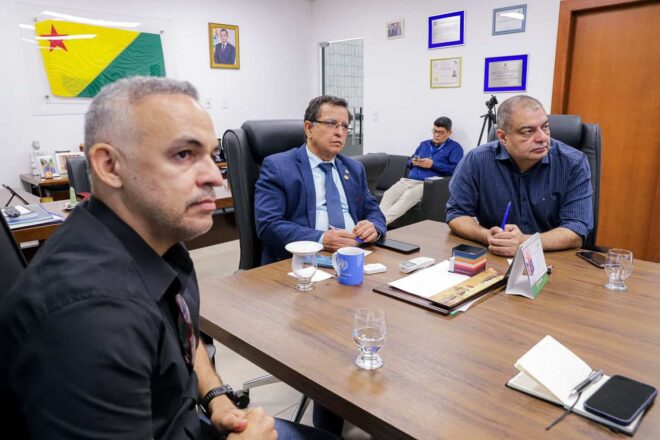 O presidente da Assembleia Legislativa do Acre (Aleac), deputado Luiz Gonzaga (PSDB), participou nesta terça-feira (11) de reunião com representantes do governo do Acre e equipe de relações internacionais para tratar sobre o corredor bioceânico e ações para exportação e integração pelo Arco Norte, eixo de escoamento para exportações aos países sul-americanos.