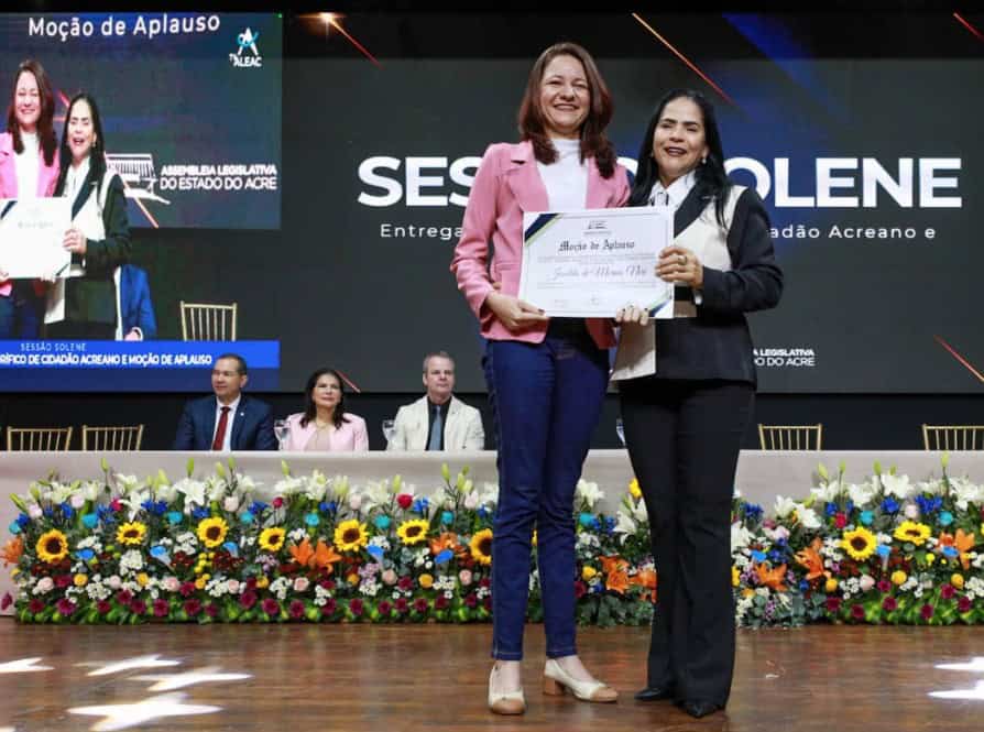 A Assembleia Legislativa do Acre (Aleac) realizou, na manhã desta quinta-feira (18), uma sessão solene para a entrega de mais de 50 Títulos de Cidadão Acreano e mais de 90 Moções de Aplauso a personalidades e instituições que se destacaram em 2025. Entre os homenageados estava a nutricionista materno-infantil Janilda Moraes Neri, natural de Brasiléia, que retornou ao estado após anos de atuação no Nordeste, México e Argentina.