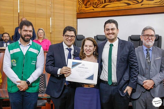 Ao final da solenidade, profissionais da medicina receberam certificados de honra no centro do Plenário, em reconhecimento pelos importantes serviços prestados à comunidade acreana.