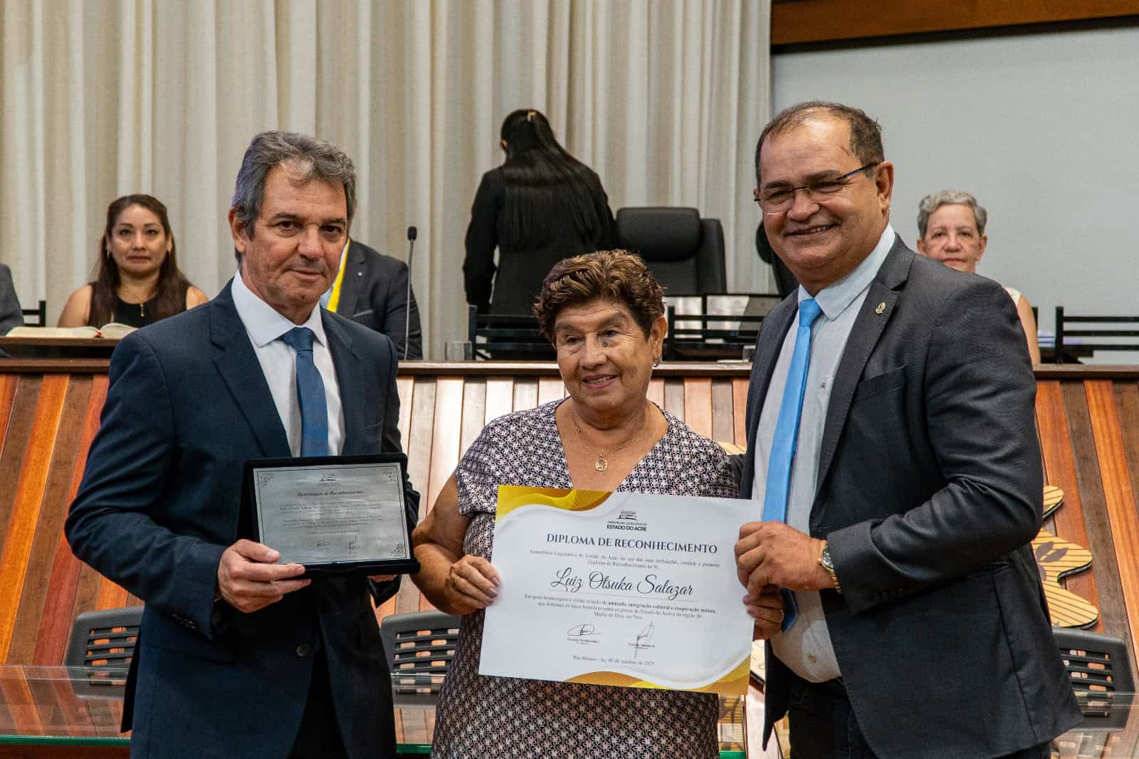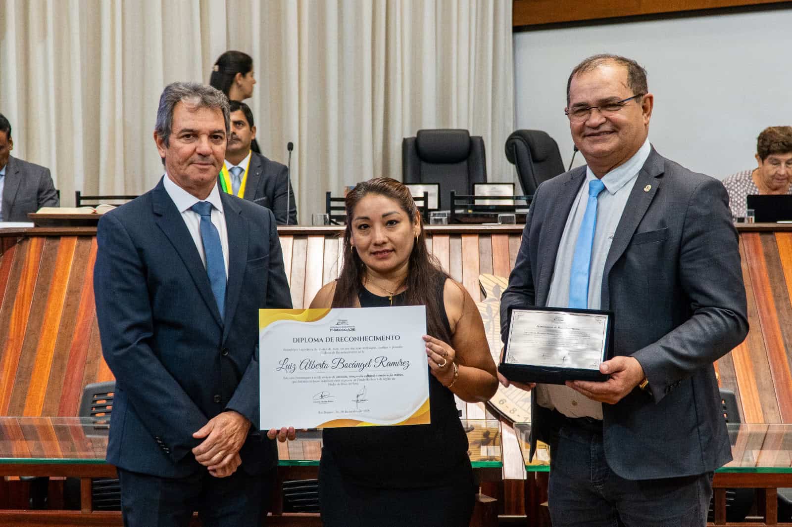 A cônsul honorária do Peru no Acre, destacou durante a solenidade a importância da integração entre os povos brasileiro e peruano, ressaltando o papel da Assembleia Legislativa no fortalecimento dessa parceria. “Agradeço ao deputado Tanízio Sá e à Aleac por nos receberem tão bem. Este é um momento de gratidão e de reconhecimento ao trabalho de união entre os dois países, especialmente pelo acolhimento e pelo tratamento humano que o Acre oferece à comunidade peruana”, afirmou.
