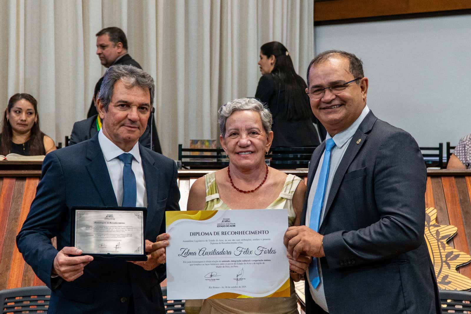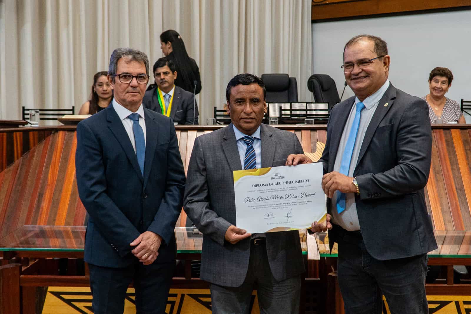 Realizada no plenário da Aleac, a solenidade reuniu autoridades estaduais, representantes dos municípios homenageados e convidados especiais, reforçando o compromisso com o diálogo transfronteiriço e a integração amazônica. O deputado Tanízio sá ressaltou a importância da iniciativa e o simbolismo do ato para o fortalecimento das relações bilaterais.