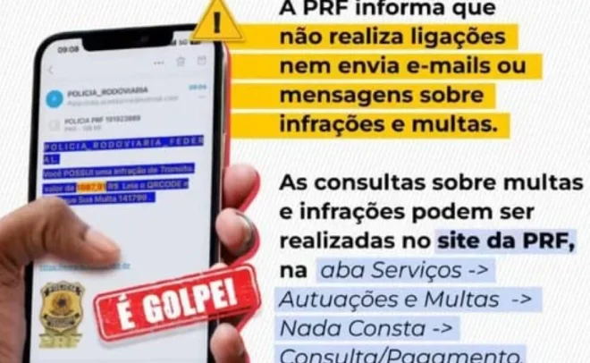 Caso receba alguma notificação suspeita, a PRF orienta a população a não realizar nenhum pagamento e entrar em contato com a instituição por meio do telefone 191 ou pelo site oficial da PRF: www.prf.gov.br.