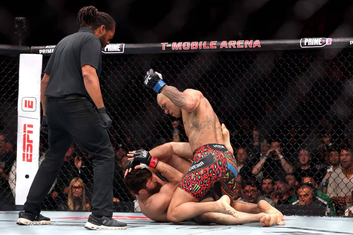 A pressão deu resultado rapidamente. Um direto de direita levou Ankalaev ao solo e, no chão, Poatan completou o serviço com uma sequência brutal de cotoveladas até o árbitro interromper o combate, decretando nocaute técnico em apenas 80 segundos de luta – e uma resposta contundente à derrota sofrida no último encontro entre os dois.
