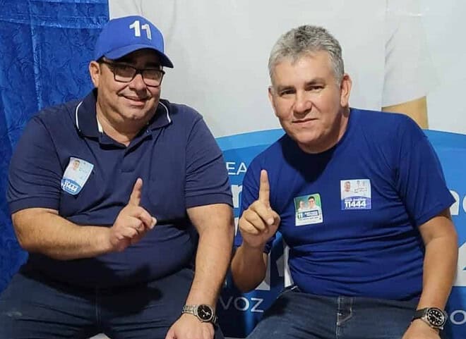 Jornalista Almir Andrade (dir), ao lado do eleito prefeito por Brasiléia, Carlinho do Pelado, ambos do Partido Progressista – PP.