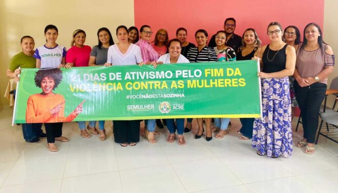 A Secretaria de Estado da Mulher (Semulher), por meio do Centro Especializado em Atendimento à Mulher (Ceam) Alto Acre, deu continuidade às atividades dos 21 Dias de Ativismo pelo Fim da Violência contra as Mulheres em Brasileia.