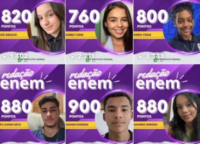 Estudantes do Instituto Federal do Acre (IFAC), campus Sena Madureira, alcançaram notas expressivas na redação do Exame Nacional do Ensino Médio (Enem) 2025, variando de 760 a 900 pontos. Os resultados foram divulgados nas redes sociais oficiais da instituição e destacam alunos que superaram os 800 pontos, com casos de 880 e 900.