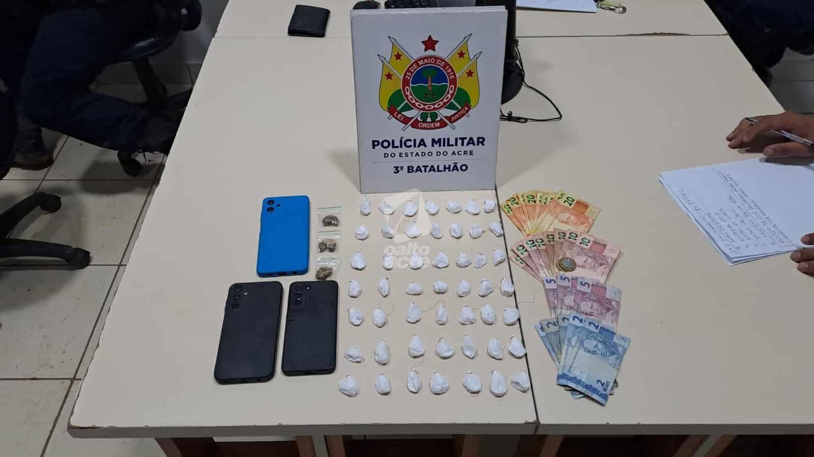 Durante a ocorrência, Luiz Henrique, de 20 anos, também foi abordado. Após consulta aos sistemas de segurança, os militares constataram a existência de um mandado de prisão em aberto contra ele, expedido pela Vara Criminal de Sena Madureira. Conforme a polícia, Luiz afirmou que trabalhava em esquema de “plantão” no ponto de venda, recebendo R$ 80 por turno.