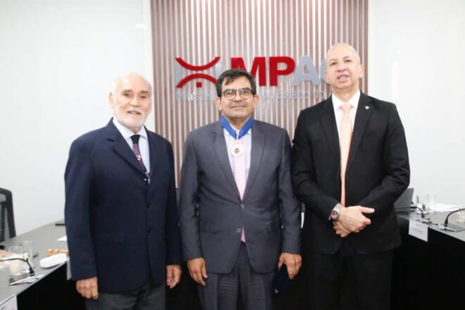 Nesta sexta-feira, 26, o Colégio de Procuradores de Justiça do Ministério Público do Estado do Acre (MPAC) realizou a 3ª Sessão Plenária Ordinária do ano, ocasião em que o corregedor-geral Álvaro Luiz Araújo Pereira recebeu a Medalha do Mérito do Conselho Nacional de Ouvidores-Gerais do Ministério Público dos Estados e da União (CNOMP).