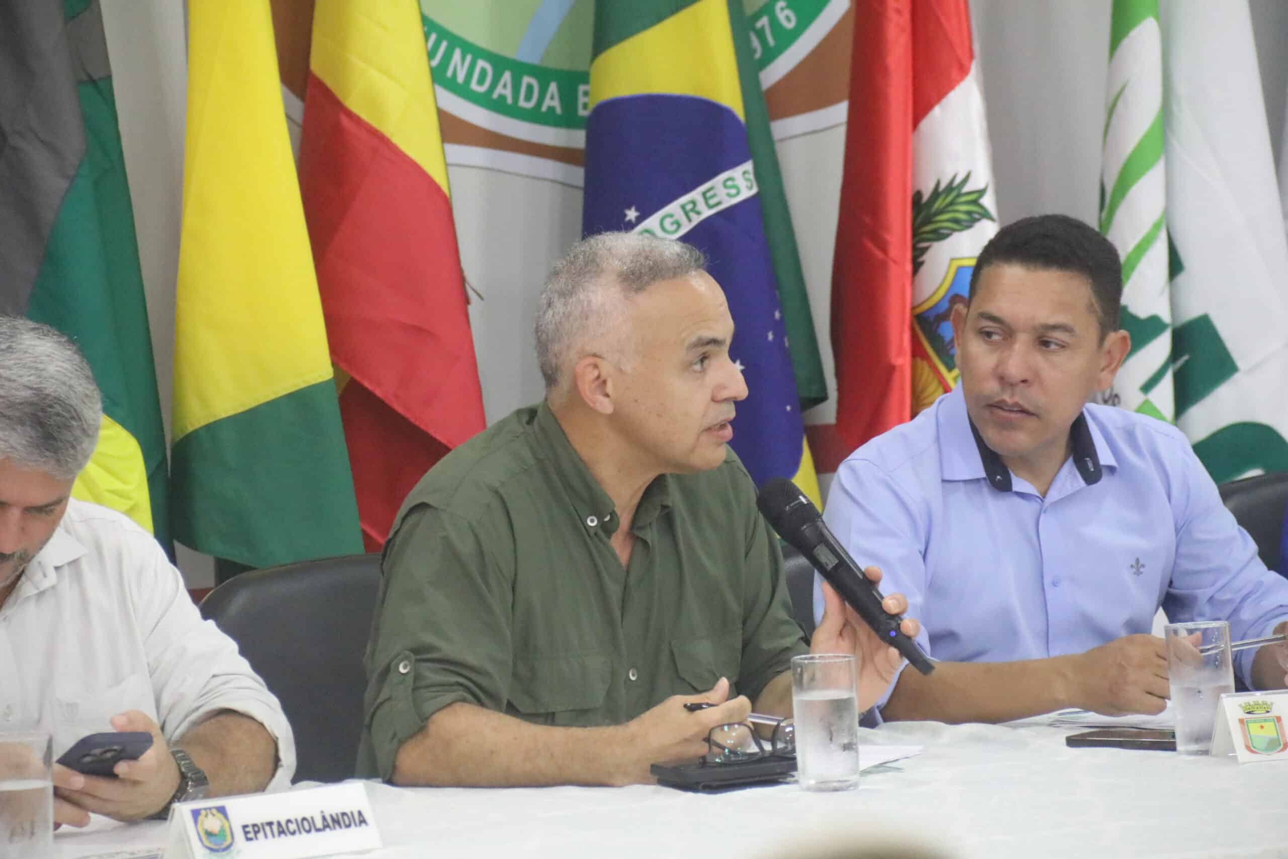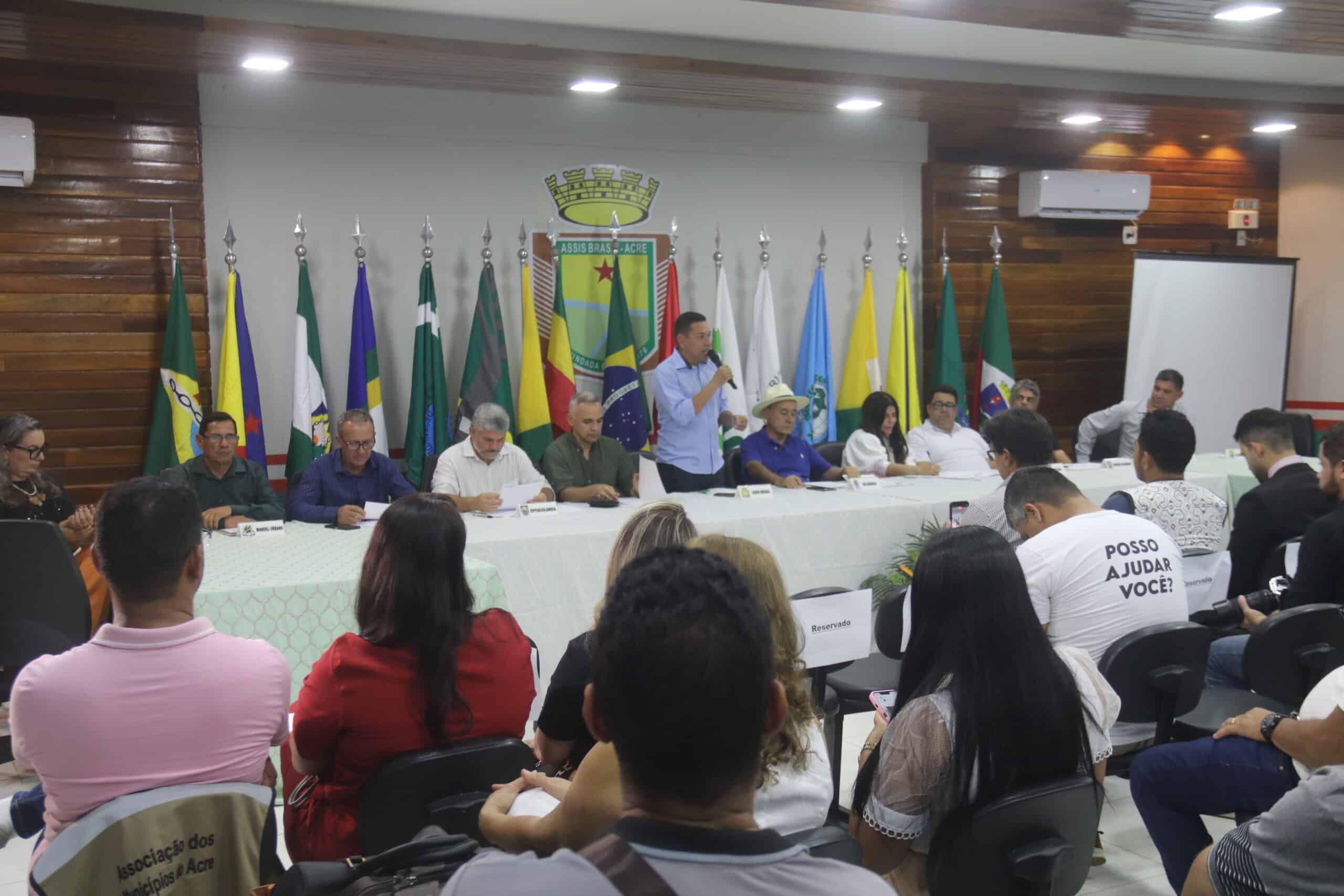 O prefeito de Rio Branco e presidente da Associação dos Municípios do Acre (Amac) e do Consórcio Intermunicipal de Resíduos Sólidos (Cinreso), Tião Bocalom, conduziu nesta semana a segunda sessão extraordinária conjunta das duas entidades na Regional do Alto Acre, realizada no prédio anexo da Prefeitura de Assis Brasil.