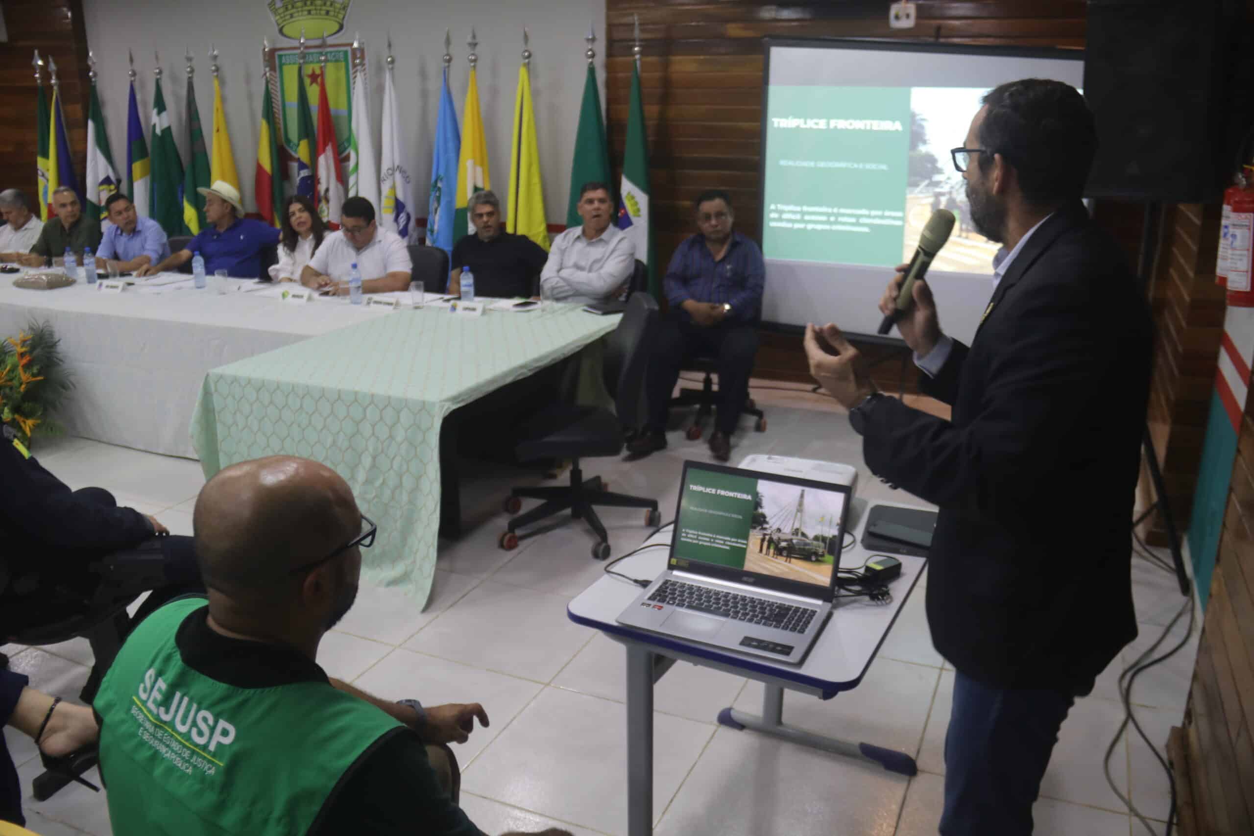 O Governo do Estado foi representado pelos secretários Cel. Ricardo Brandão (Planejamento) e Cel. José Gaia(Segurança), que destacaram ações estratégicas para o fortalecimento da segurança nas fronteiras. Já o Governo Federal esteve presente por meio do superintendente do Incra, Márcio Alércio, que enfatizou a importância da regularização fundiária urbana e rural em parceria com os municípios.