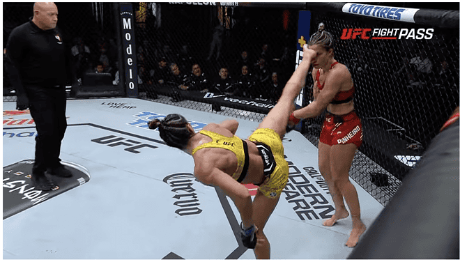 “Categoria do peso-palha, estou de volta, e tem que respeitar. Tenho um propósito porque o UFC mudou a minha vida e a da minha família. Tive uma cirurgia nos olhos, lutei duas vezes com 57 kg esse ano. Estou muito feliz de estar aqui. UFC, amo vocês “, declarou a mineira, ainda no octógono, após a luta.