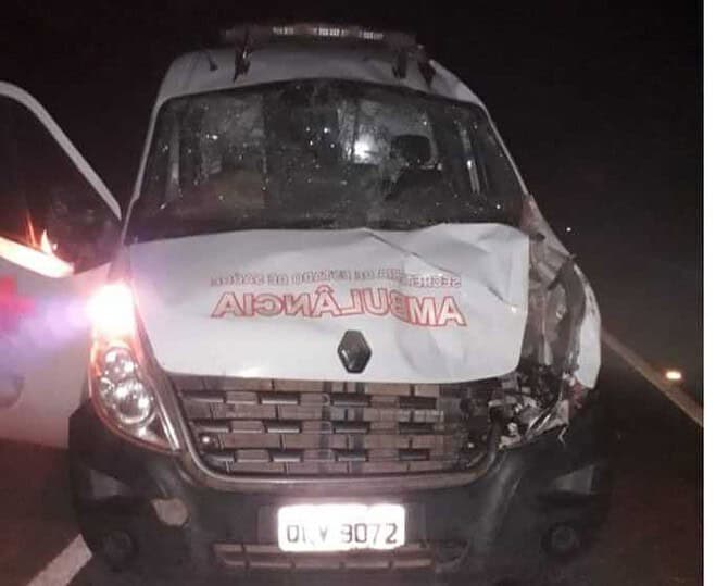 Por outro lado, o animal morreu com o impacto, caindo em uma ribanceira e a ambulância ficou danificada, tanto na parte externa quando os equipamentos dentro do veículo.