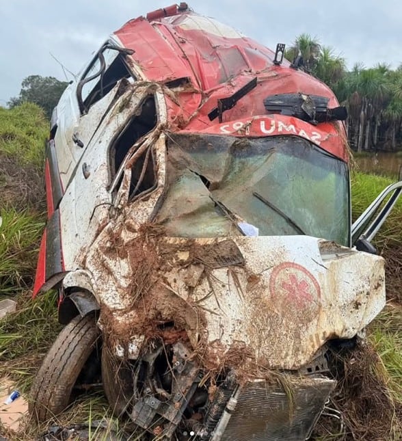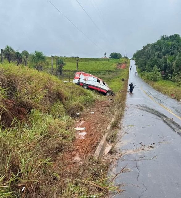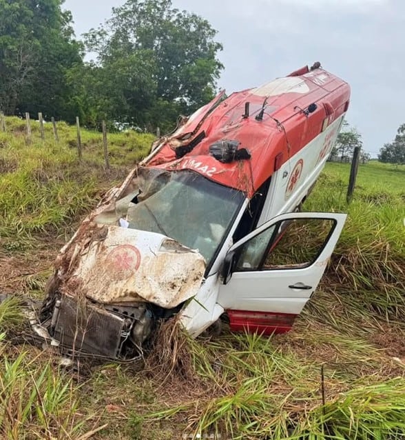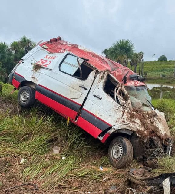 A unidade capotou várias vezes até parar às margens da pista. No interior da ambulância estavam o condutor e uma técnica de enfermagem, que, de acordo com os primeiros relatos, não sofreram ferimentos graves.