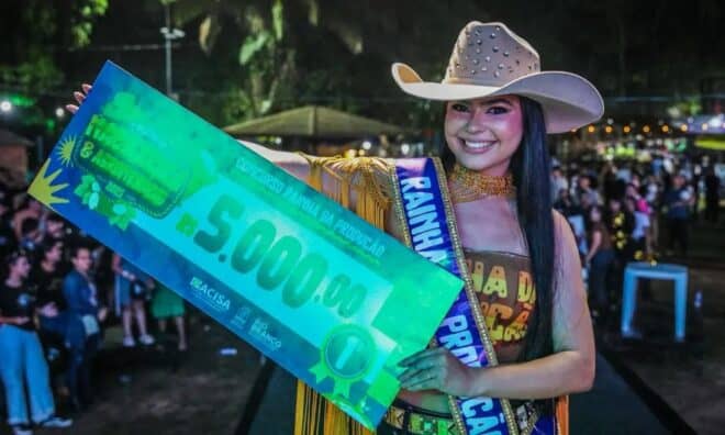 Logo após a disputa, a nova Rainha da Produção 2025, Ana Gabriele, contou ao repórter David Medeiros que se preparou bastante para o concurso. “Graças a Deus me preparei muito e estou muito feliz em ser a Rainha da Produção 2025”, comentou.
