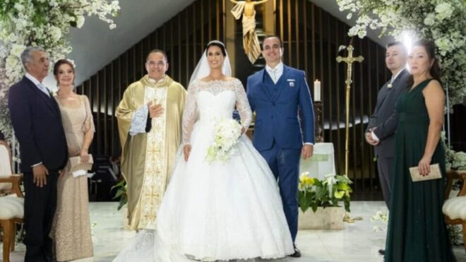 A cerimônia religiosa, realizada na bela paróquia do Lago Sul, foi um momento de grande emoção. A igreja, decorada com requinte pela Ornatti Decorações, criou o cenário perfeito para a união dos jovens. O vestido de noiva, uma criação de Fernando Peixoto, destacou a beleza de Anna Carolina.