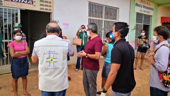 Representante da Agencia Vigilância Nacional de Saúde e do município de Brasiléia, estiveram visitando parte do comércio afim de levar orientação sobre o combate ao vírus covid-19, que está previsto nos Decretos publicados tanto pelo governo Federal, quanto Estadual.