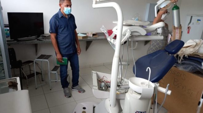 O prefeito ouviu de alguns profissionais da saúde que trabalham na unidade que o equipamento foi danificado no ato de instalação. Foi informado ao chefe do executivo que à epoca a Prefeitura não contratou profissional habilitado para o serviço, permetindo que o instrumento fosse montado por leigo, o que ocasiou um curto na placa central da cadeira odontológica.