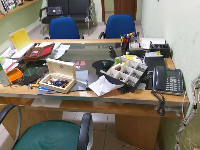 Farias postou uma sequencia de fotos que mostra o estrago causado pelo arrombadores, que reviraram tudo em busca de ítens de valor. No post, ele não cita o que foi foi levado dessa vez, mais faz uma pergunta direta aos gestores da pasta de segurança Pública.