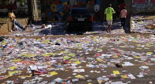 Apesar de ser comum, espalhar panfletos e outros materiais impressos no local de votação ou nas vias próximas é proibido pela legislação eleitoral.