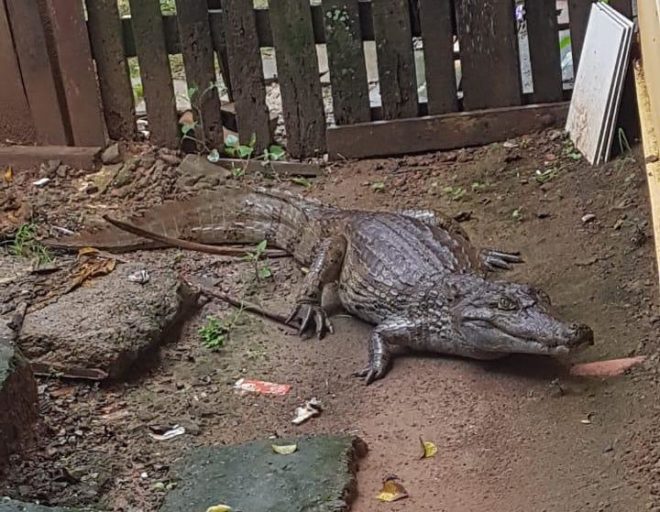 Em um vídeo que circula nas redes sociais, é possível ver os bombeiros imobilizando e retirando de dentro do quintal de uma residência, com cuidado e técnica, um jacaré de aproximadamente três metros, fato este, que impressionou vizinhos e populares.