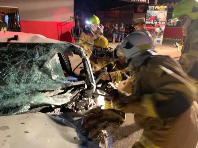 Duas jovens, uma de 26 e outra de 29 anos, colidiram o veículo em que estavam com um poste de energia, ficando assim, a condutora presa nas ferragens. Com o auxílio do desencarcerador e expansor a guarnição do 1º Batalhão da Capital, ajudou no socorro das vítimas, retirando-as das ferragens.