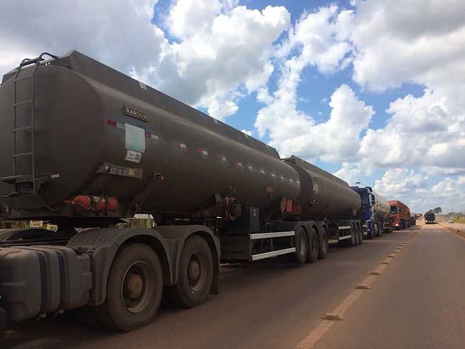 Carretas com combustível foram liberadas por caminhoneiros após acordo com a PRF-AC (Foto: Guilherme Barbosa/Rede Amazônica Acre)