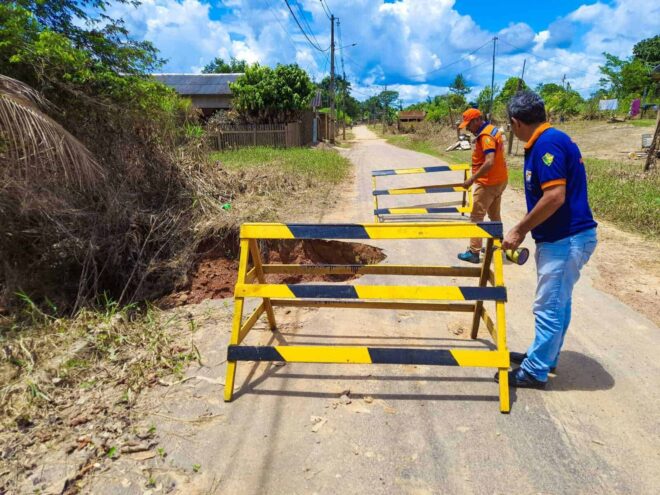 Após a maior alagação do Rio Acre no município que deixou milhares de pessoas desalojadas e desabrigadas e a cidade ficar com um cenário de destruição. A Defesa Civil Municipal emitiu um novo alerta de desmoronamento em várias ruas no município por tempo indeterminado até o restabelecimento completo desses locais.