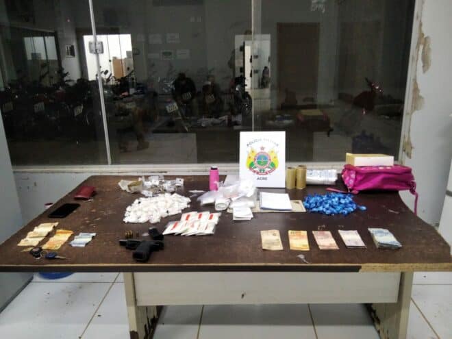 Equipes da Polícia Militar do Acre (PMAC), com o apoio da Polícia Rodoviária Federal (PRF), conseguiram prender dois indivíduos na noite desta terça-feira, 4, após o roubo a um posto de gasolina localizado na BR 317, Km 52, no município de Porto Acre. Na ocorrência também foram apreendidos uma arma de fogo e diversos tipos de substâncias entorpecentes.