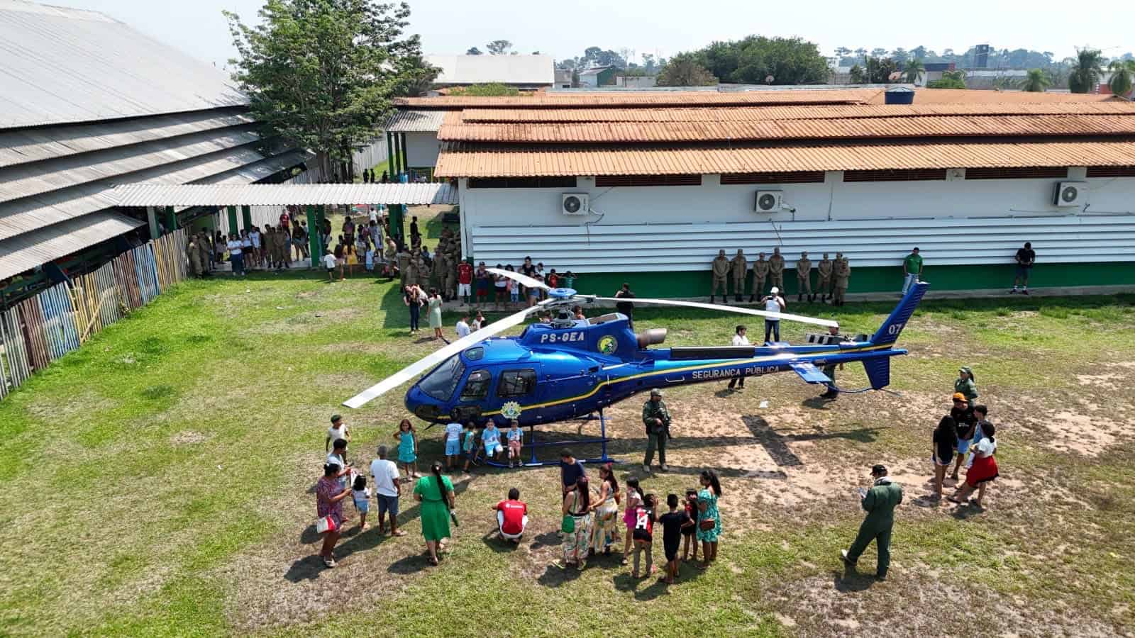 O tradicional pouso de helicóptero atraiu centenas de crianças, que ficaram contentes em ver a aeronave tão de perto e realizar manobras radicais.