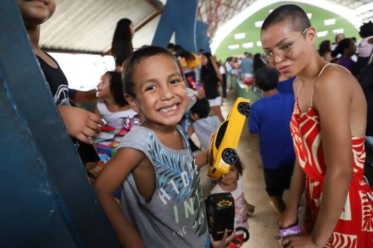A governadora em exercício Mailza Assis iniciou a entrega de mais de 2.500 brinquedos arrecadados pela campanha “Faça Uma Criança Sorrir” para meninos e meninas do bairro. Mailza destaca que é um momento mágico e que contagia: “Essa emoção, a felicidade de ver no rostinho deles, simplesmente por ganhar um presente, por ter uma ação voltada pra eles, é uma satisfação enorme”.