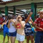 A festa na região já se tornou tradição entre as crianças e familiares, que se planejam para aproveitarem. Durante a pintura corporal realizada pela polícia civil, sucesso entre as crianças, mãe e filha destacaram a satisfação em participar todos os anos.