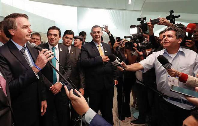 (Macapá – Amapá, 12/04/2019) Presidente da República, Jair Bolsonaro, fala com a imprensa, após a cerimônia de Inauguração do Novo Terminal de Passageiros do Aeroporto Internacional de Macapá – Alberto Alcolumbre.