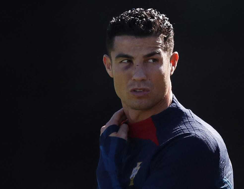Após choque e sangramento, Cristiano Ronaldo treina com olho roxo em Portugal