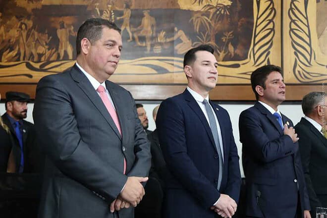 Despedindo-se da presidência da Assembléia Legislativa do Acre (Aleac), o deputado Ney Amorim (Sem Partido), deu posse ao novo governador do Acre, Gladson Cameli e seu vice, Major Rocha, em cerimônia nesta terça-feira (1).