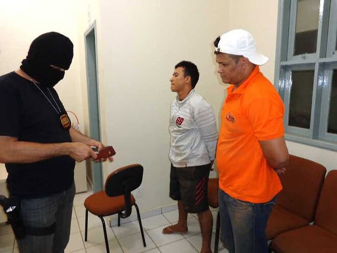 Dois dos traficantes foram detidos e levados à delegacia após prisão em flagrante delito. Um fugiu. Fotos: cedidas
