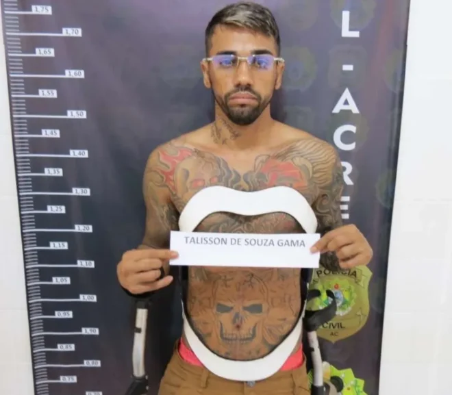 Talisson de Souza Gama tinha recebido prisão domiciliar para tratamento médico no último dia 13 de junho e rompeu tornozeleira eletrônica dois dias depois. Ele foi capturado em Cruzeiro do Sul na última sexta-feira (11).