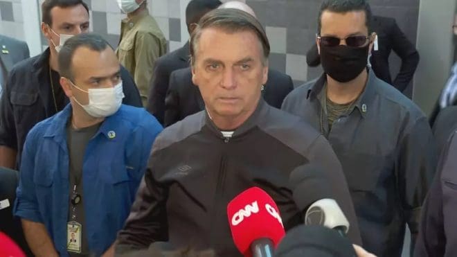 “Comecei a passar mal, depois de uma cirurgia de implante, e a origem disso é complicado. Alguns dias depois agravou a crise de soluço, fogo no estômago. A causa era obstrução intestinal, porque a aderência é comum para quem sofreu cirurgia, como eu sofri pela facada’, disse Bolsonaro na saída do hospital.