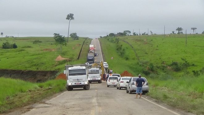 Após o rompimento da BR 317 por volta das 14 horas da tarde da última segunda-feira, dia 05, a cerca de 12 quilômetros após a entrada do entrocamento que dá acesso a Xapuri, sentido Rio Branco/Alto Acre, onde desmoronou após rompimento do bueiro.