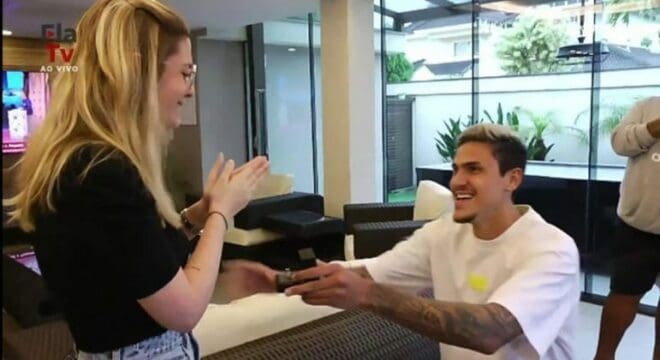 Pedro aproveitou convocação para a Copa para pedir a namorada em casamento REPRODUÇÃO/FLATV