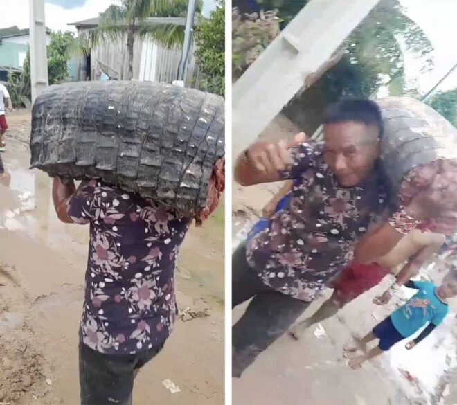 Um jacaré-açu, predador exclusivo existente da América do Sul, foi abatido após uma tentativa de ataque a um ribeirinho no Rio Purus neste domingo, dia 24, no município de Manoel Urbano, no interior do Acre,