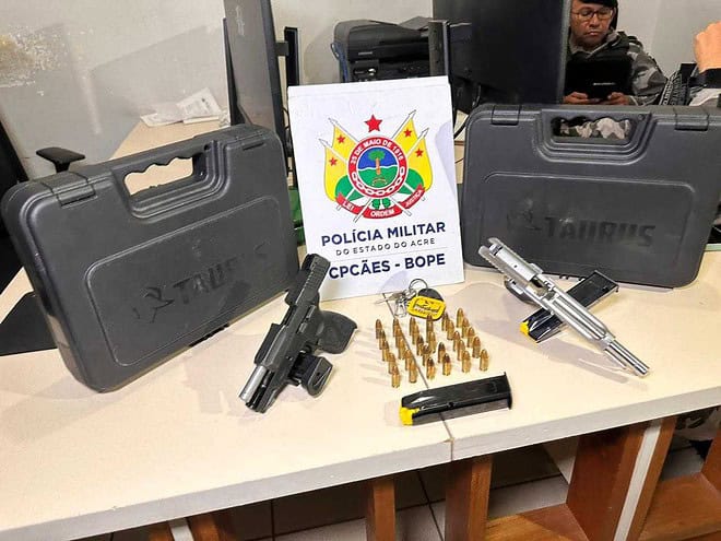 Diante dos fatos, foi dada voz de prisão ao monitorado e o mesmo foi encaminhado com as armas de fogo e o veículo para a Delegacia de Flagrantes (Defla), para os devidos procedimentos.