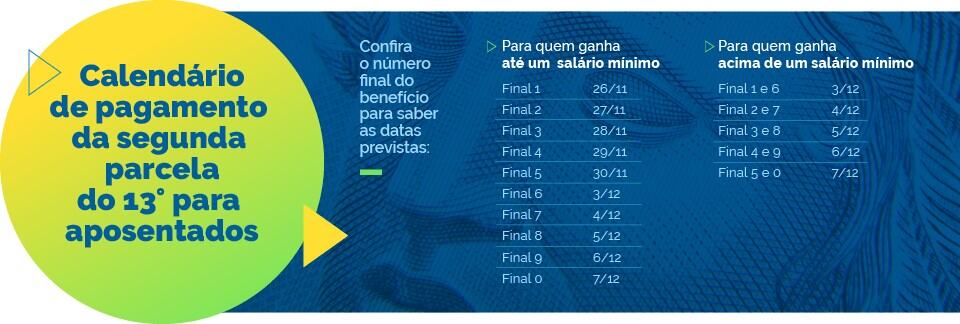 A segunda parcela do 13º corresponde a 50% do valor de cada benefício. É nessa parcela que pode ser realizado o desconto do Imposto de Renda (IR). De acordo com o INSS, 30,1 milhões de cidadãos vão receber a segunda parcela do 13º entre esta segunda-feira e 7 de dezembro. No total, os pagamentos somam R$ 21,4 bilhões.