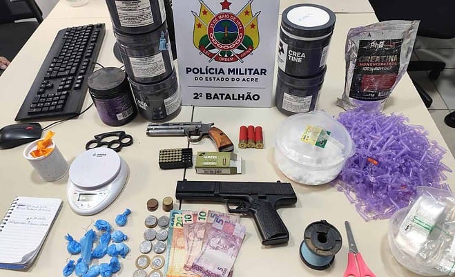 Uma operação da Força Tática do 2º Batalhão da Polícia Militar na noite de segunda-feira, 25, resultou na apreensão de drogas, armas e munições em um estabelecimento comercial no Ramal da Judia, bairro Belo Jardim 1, zona rural de Rio Branco. Maria Raimundo Costa do Nascimento, de 27 anos, foi presa em flagrante por tráfico de drogas e porte ilegal de armas.