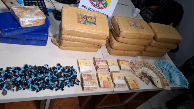 Durante buscas no local, foram localizadas ainda outras três barras da mesma substância escondidas em um recipiente tipo isopor. No total, foram apreendidas 120 trouxinhas de cocaína, cerca de 3,5 quilos de oxidado e R$ 14.150 em dinheiro.