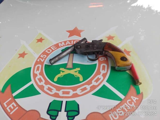 Segunda ocorrência se deu na manhã deste domingo, guarnição do Batalhão de Policiamento Ambiental (BPA), durante “Operação Sentinela” apreendeu uma garruncha calibre 36, com um homem.