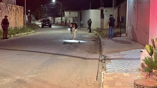 Policiais militares do 1° Batalhão estiveram no local e isolaram a área para o trabalho da perícia criminal e realizaram também uma ronda ostensiva e não tiveram êxito em prender os autores do crime.