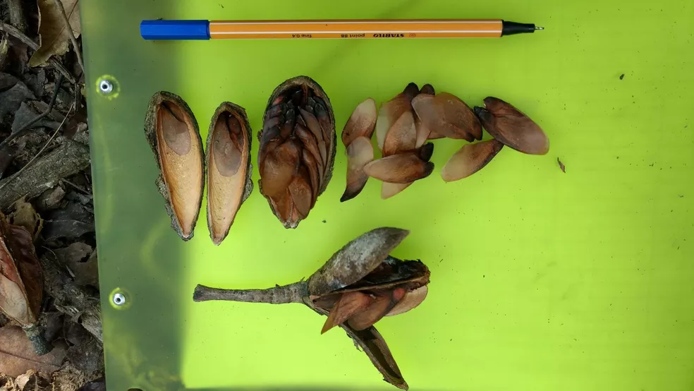Estudo descobriu também frutos e sementes de cetro de rosa de árvores plantadas em parque — Foto: Arquivo pessoal